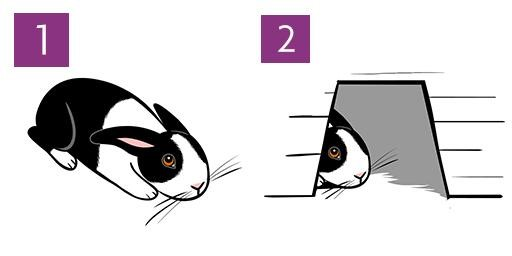 A good place to start is to look at your rabbit’s ears. If they’re close together, facing upwards and pointing outwards, your rabbit is likely to be relaxed and happy. If they’re worried, their ears will be flattened against their back. You can also look at your rabbit’s eyes and body posture, as well as their behaviour – for example, a rabbit may be anxious if they’re hiding.